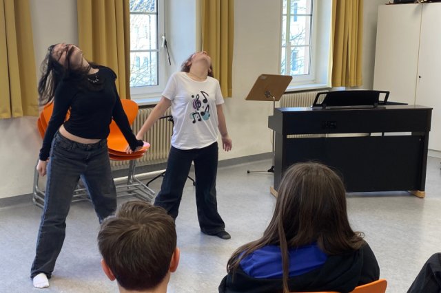 Auch musikalisch wurde viel geboten: Mehrere Schülerinnen trauten sich, alleine oder zu zweit vor der Klasse zu singen. Auch hier war Abwechslung geboten: Ein Musicalsong, eine Popballade und ein Rocksong zeigten, wie unterschiedlich die musikalischen Vorlieben der einzelnen Personen sind. Besonders überraschend war die spontane Gründung eines neuen Duos mit Ukulele und Querflöte.