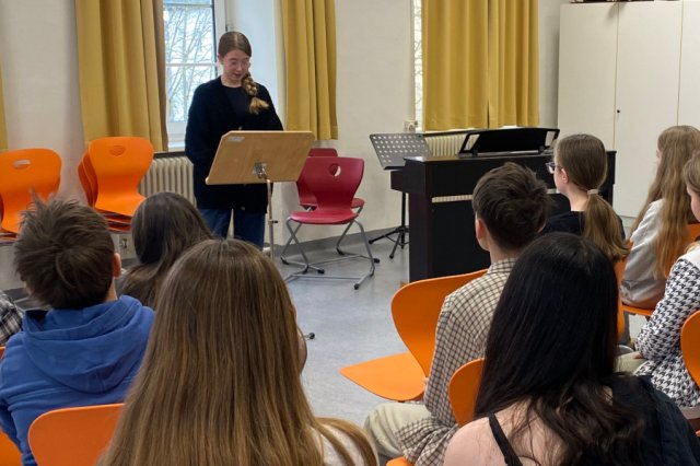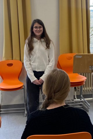 Darüber hinaus wurde ein selbst geschriebenes Gedicht vorgetragen und eine Schülerin zeigte, dass eine kleine Autorin in ihr schlummert, indem sie einen selbst verfassten, spannenden Text vorlas. Auch ein Kurzreferat über ein persönliches Musikidol war Teil der Präsentationen.
